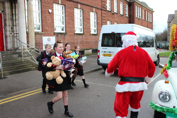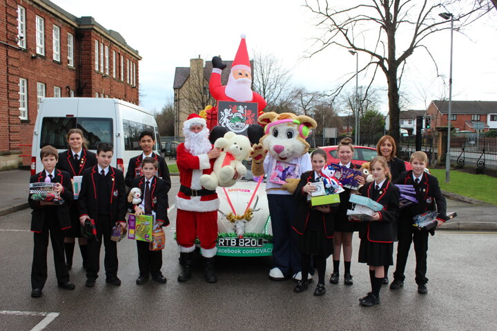 Staff and students at The Birkenhead Park School donated and collected over 100 presents in total for the cause. The gifts were collected on Wednesday 16th December by Father Christmas and his helper in a festive VW Beetle, which our year 7 students helped to fill with the various toys, games and products collected.