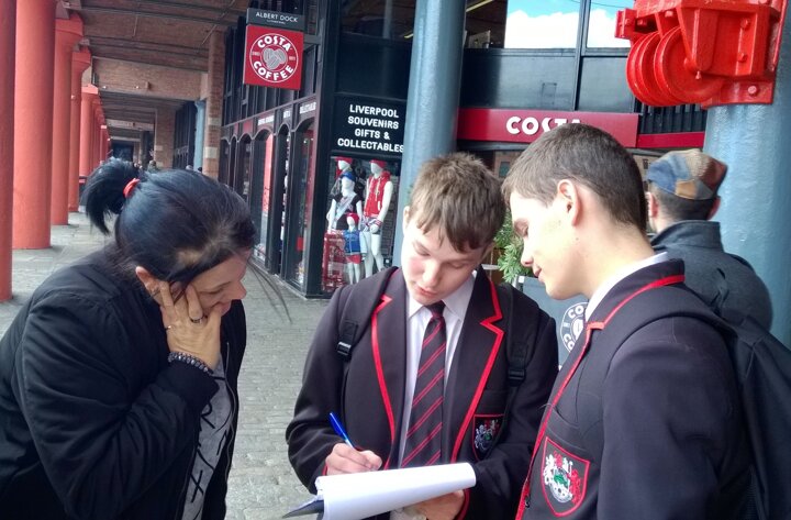The 54 students went to Liverpool One in the morning and then to the Albert Docks for the afternoon. They spoke to a mixture of local people as well as tourists in order to get a broad range of views.